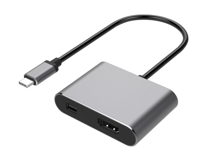 本产品为一进二出高清视频转接器,,,,,,,USB-C接口支持最新DP alt mode 信号输入,,,,,,,HDMI和Mini DP信号输出,,,,,,,可支持SST模式下两个4K/60Hz区分率。。。。。将USB-C 公头插入电脑/平板等有USB TYPE-C接口的主机装备,,,,,,,再用HDMI或Mini DP线毗连有HDMI 接口的显示器/投影仪等装备,,,,,,,即可复制到另外两个显示器上面。。。。。多屏显示可应用于多使命处置惩罚应用场景,,,,,,,可显著地提高事情效率。。。。。