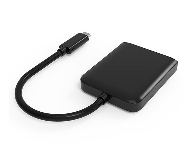 本产品为一进二出高清视频转接器,,,,,,USB-C接口支持最新 DP alt mode 信号输入,,,,,,2个HDMI信号输出,,,,,,MST模式下同时输出两个4K@60Hz区分率。。。。。。。将USB-C公头插入电脑/平板等有USB TYPE C接口的主机装备,,,,,,再用HDMI线材毗连显示器/电视/投影仪等有HDMI接口的显示装备,,,,,,即可增添另外两个显示器来镜像多个相同界面或拓展多个差别的界面。。。。。。。多屏显示可应用于多使命处置惩罚应用场景,,,,,,可大大地提高事情效率。。。。。。。