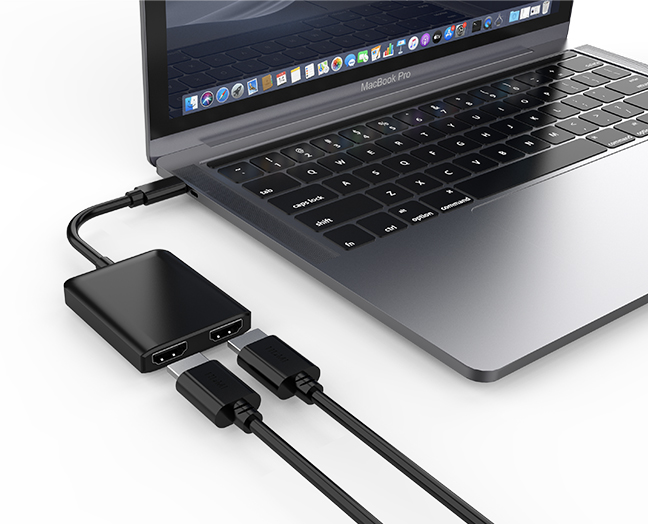 本产品为一进二出高清视频转接器,,,,,,USB-C接口支持最新 DP alt mode 信号输入,,,,,,2个HDMI信号输出,,,,,,MST模式下同时输出两个4K@60Hz区分率。。。。。。。将USB-C公头插入电脑/平板等有USB TYPE C接口的主机装备,,,,,,再用HDMI线材毗连显示器/电视/投影仪等有HDMI接口的显示装备,,,,,,即可增添另外两个显示器来镜像多个相同界面或拓展多个差别的界面。。。。。。。多屏显示可应用于多使命处置惩罚应用场景,,,,,,可大大地提高事情效率。。。。。。。